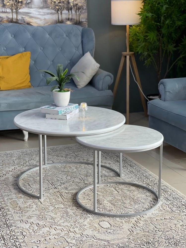 • طاولتان دائريتان بتصميم عملي قابل للتداخل.